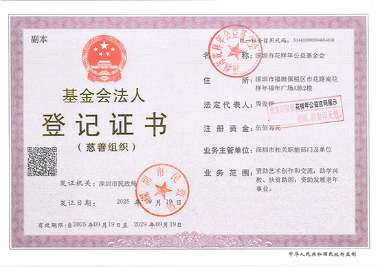 深圳市花樣年公益基金會是由花樣年集團發(fā)起,于2013年3月在深圳市民政局注冊成立的非公募公益基金會,是花樣年集團踐行戰(zhàn)略性企業(yè)社會責任的載體。公益基金會以“樂享公益”為核心理念,以“促進公益事業(yè)發(fā)展,構(gòu)筑有趣、有味、有料的幸福人生!”為宗旨,共有藝術公益、教育公益、養(yǎng)老公益三大公益品牌項目。